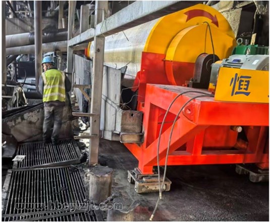 由于車間設(shè)備布局緊湊,該磁選機(jī)無法被直接用天車吊起更換。為安全快速更換磁選機(jī),維修主任楊桂福出謀劃策,提前制作四組滾輪,為磁選機(jī)安裝了“輪滑鞋”,利用卷揚(yáng)機(jī)將磁選機(jī)拉出車間,不但節(jié)約維修時間,而且大幅度降低吊裝作業(yè)產(chǎn)生的安全風(fēng)險(xiǎn)。